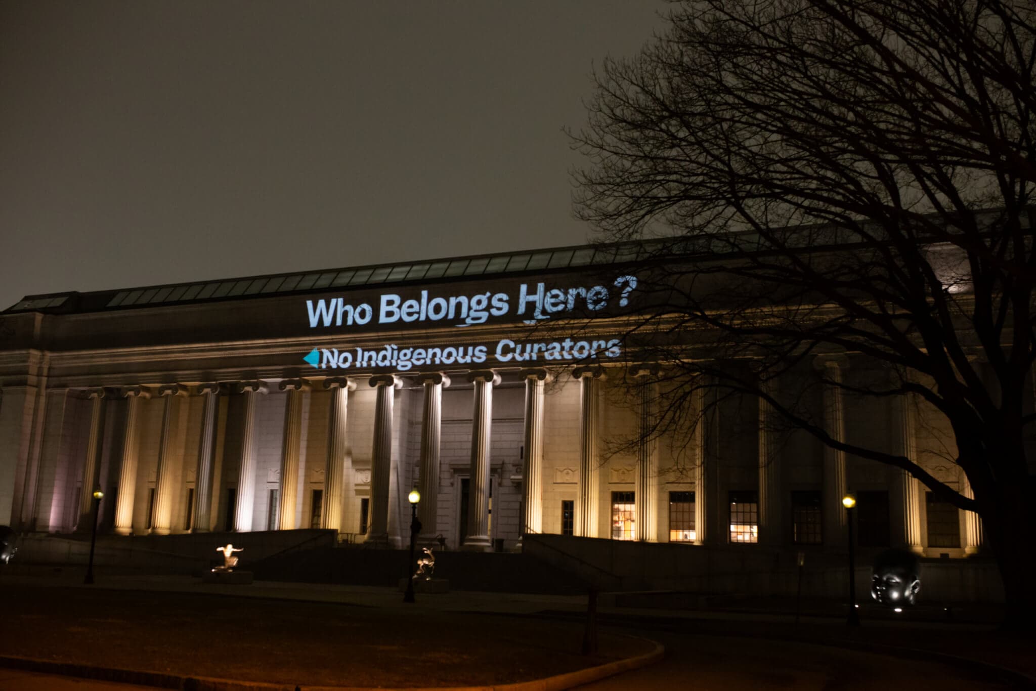 “Who Belongs Here?” Guerrilla Protest Projection Critiques MFA Layoffs