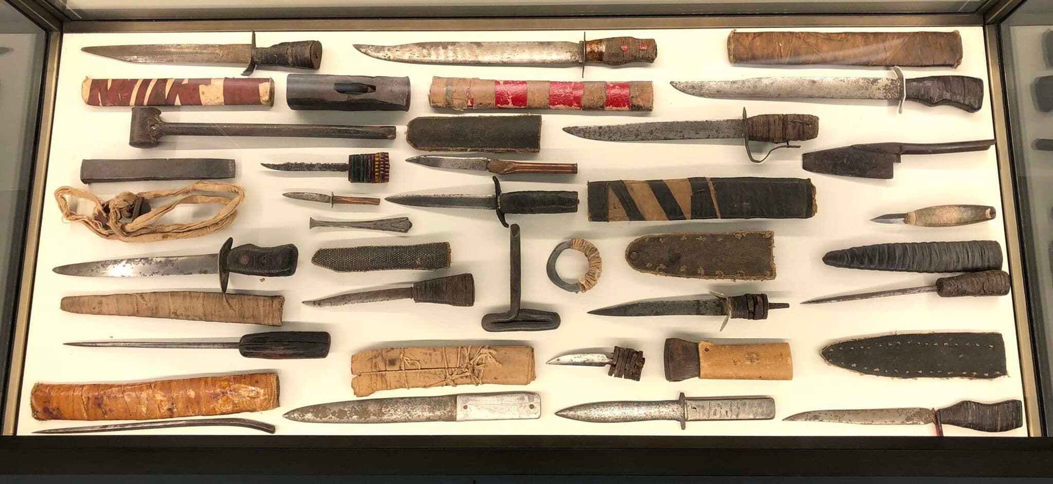 Folsom Prison, California. Collection of Improvised Shanks (ca. 1920’s–1950’s). Found objects, wooden box. Variable sizes.