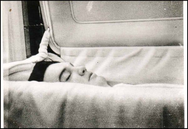 Original photograph of Elvis Presley lying in state (1977). Silver gelatin photograph. 8″ x 5.5″.
